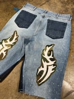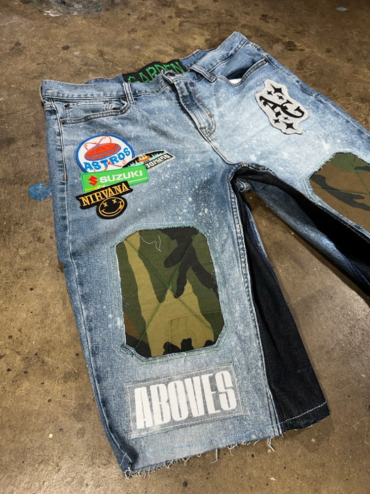 Stand out with these exclusive one-of-one denim shorts, designed for comfort, edge, and originality. Featuring built-in padded knees, these shorts offer a bold, functional twist—perfect for streetwear lovers, skaters, or anyone who moves with intention. Handcrafted from high-quality denim, each pair is uniquely distressed and finished for a look that can’t be replicated.