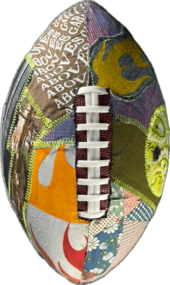 Elevate the game with one-of-a-kind artistry. Each football is carefully handcrafted from upcycled fabrics, stitched together to create a bold patchwork design that blends sport with street culture. No two pieces are alikeâevery football carries its own story through textures, colors, and patterns.