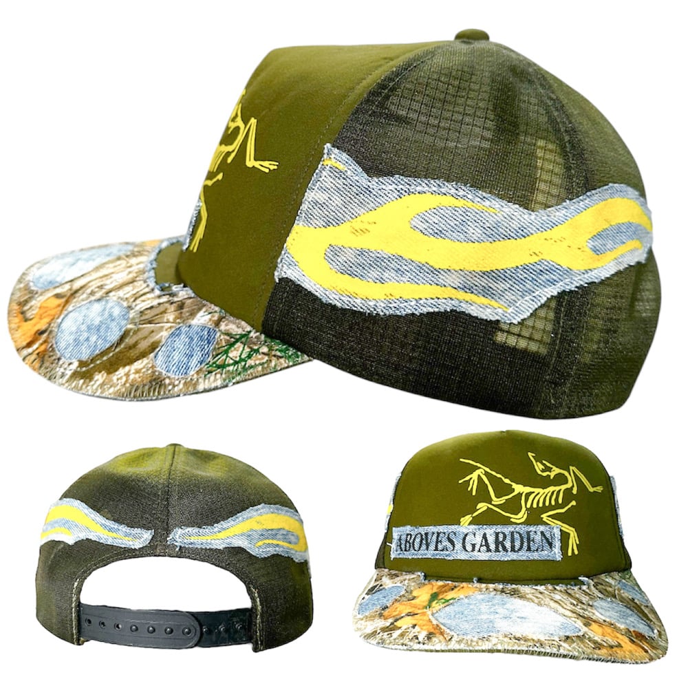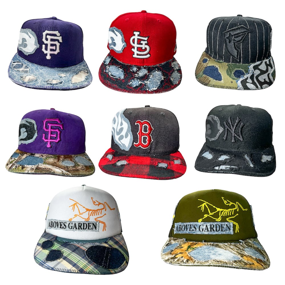 This exclusive hat drop blends vintage streetwear, sports heritage, and raw artistic energy. Each cap is reimagined with distressed textures, patchwork detailing, and signature flame and camo graphics. From iconic team logos to original ABOVES GARDEN branding, every piece is one-of-a-kind and handcrafted for those who move different
