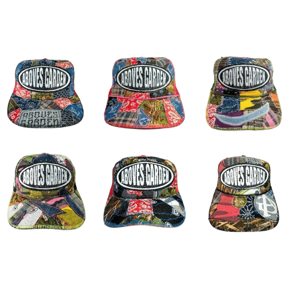 Every piece tells its own story. The ABOVES GARDEN Patchwork Hat is built from a mix of textures, colors, and grit — each one unique, no two the same. Handcrafted with custom patchwork patterns and our bold ABOVES GARDEN logo front and center.